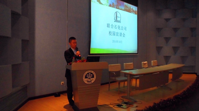 10月18日,中国国际石油化工联合有限责任公司(以下简称“联合石化”)2015届校园招聘宣讲会在天博体育 交运报告厅隆重举行。宣讲会由天博体育 国航11级辅导员都志亮主持。