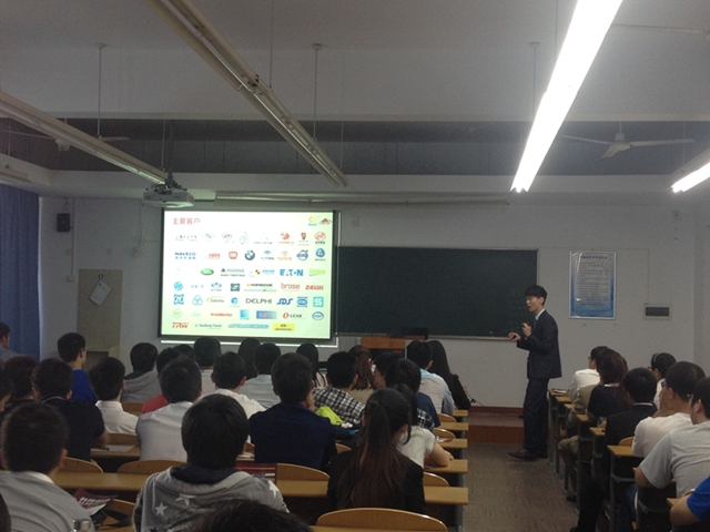 2014年10月22日下午15:00,上海安吉汽车零部件物流有限公司周祎杰经理等一行人来天博体育 招聘应届生,天博体育 国航、交通运输、物流管理、计算机、会计、财务管理等专业学生参加了本次的宣讲会。