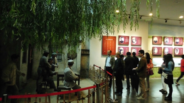 沙家浜革命历史纪念馆采用历史图片、仿真环境、实物展出、半景画、声光电等现代艺术手法,紧扣爱国主义教育和革命传统教育两大主题,主要展示了沙家浜的革命历史、新四军在这里开展抗日游击战的战斗历程、后方医院伤病员养伤的情况、京剧《沙家浜》的诞生历程和沙家浜部队的发展历史等情况,真实生动地反映了沙家浜的革命斗争史实,冯晨曦书记在参观中指出密切联系群众是我们党的优良传统,是我们党团结带领全国各族人民不断取得革命、建设、改革胜利的根本政治优势,所以要结合参观,深入体会落实群众路线教育实践活动。