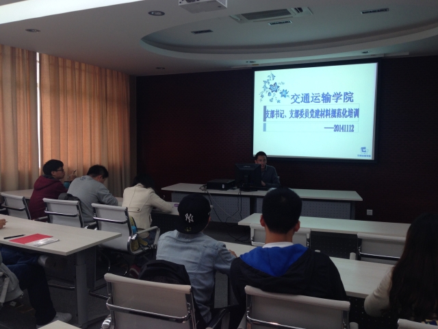 为提高学生党支部书记、支部委员政治理论素质,进一步做好学生党员发展工作,交运天博体育 于2014年11月12日下午1:30在交运楼213开展了一场党建材料规范化培训会,对支部书记和支部委员进行党建材料规范化方面的培训。