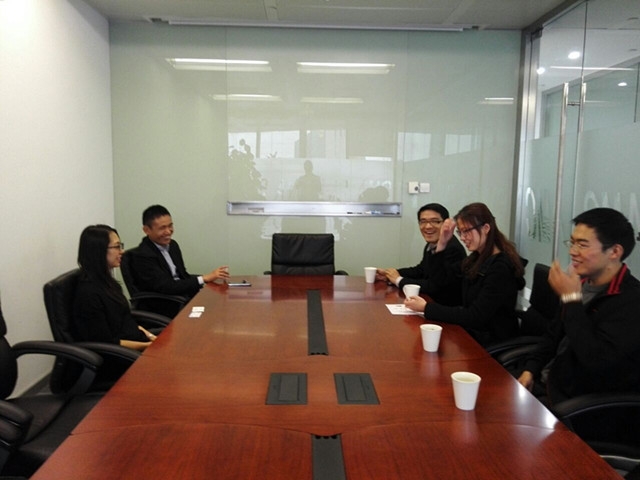 2014年11月19日下午,天博体育 学工办就业负责人都志亮老师带领4位航运管理11级应聘学生走访了位于陆家嘴东亚银行金融大厦的上海敖仕海运有限公司。该公司董事张彦高先生、操作部经理周颖女士热情接待了大家。