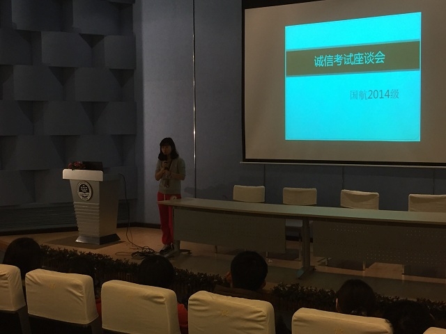 2014年11月25日,国航14级辅导员陈祯如老师在交运楼召开了关于诚信考试的班委座谈会。