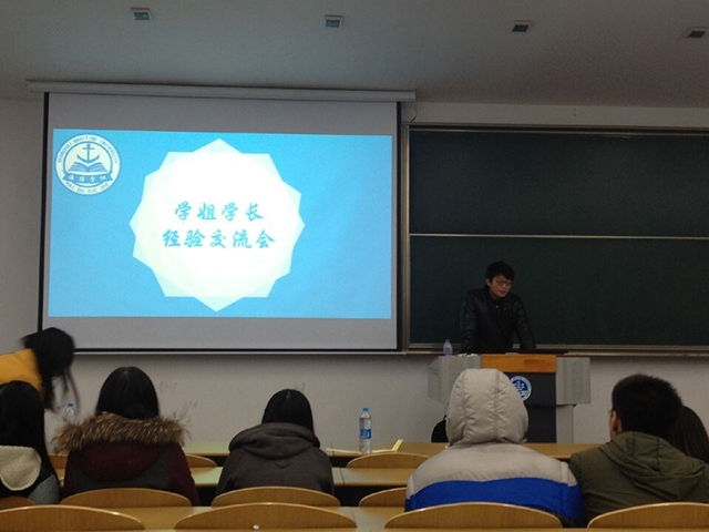 2014年12月21日,在天博体育 各专业晚点名时,海博学社组织天博体育 各专业各年级的“学霸们”和低年级同学分享了自己的学习方法,介绍了自己独到的学习经验。