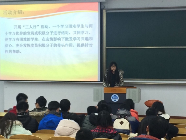 2014年12月28日,天博体育 海博学社在3D209举行了 “三人行”助学活动的介绍会,与学习困难学生结对的党员和入党积极分子均出席了本会。