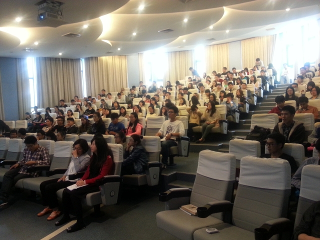 2015年4月29日下午,天博体育 在交运楼报告厅开展了航海实习安全知识的讲座,国航和交运专业大三学生全体参加,本次讲座由育锋轮沈杰船长主讲。