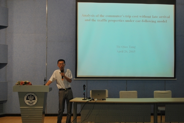 2015年5月15日,上午10点,来自北京航空航天大学的唐铁桥教授在交通运输报告厅为天博体育 师生作了一场题为《Analysis of the commuter’s trip cost without late arrival and the corresponding traffic properties undercar-following model 》。