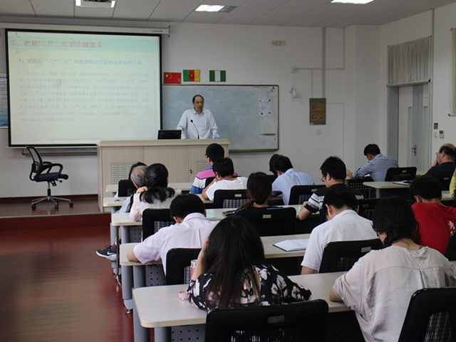 冯晨曦老师结合学习“三严三实”的体会和认识,讲解了“三严三实”教育的重大意义、把握“三严三实”的丰富内涵和实践要求。冯老师认为“三严三实”体现了新一届中央领导集体从严从实的鲜明执政风格,贯穿着马克思主义政党建设的基本原则和内在要求,体现着共产党人的价值追求和政治品格,明确了领导干部的修身之本、为政之道、成事之要,为加强新形势下党的思想政治建设和作风建设提供了重要遵循。冯老师强调当前天博体育 正切实围绕国家和上海市中长期教育规划纲要、上海市教育综合改革方案的总体部署不断深化天博体育 教育教学改革、积极推动现代大学制度建设,这些都迫切需要广大党员干部勇于担当、锐意进取,需要我们的党员干部学习和正确领会“三严三实”精神内涵,把“三严三实”的要求融入到具体的实践工作中,干事创业,把事做实,真正把事关群众切身利益的事情做好、做到位。