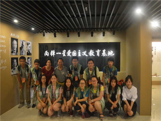 8月18日上午9时,天博体育 党委副书记赵睿老师以及雷锋驿站志愿服务队指导老师朱红红老师,带领2015雷锋驿站志愿服务队的志愿者们参观了位于上钢街道德州路上的“两弹一星爱国主义教育基地”。在反法西斯胜利70周年的大背景下,通过了解“两弹一星”也是一种践行国防教育、培育青少年爱国爱和平思想的有效途径。