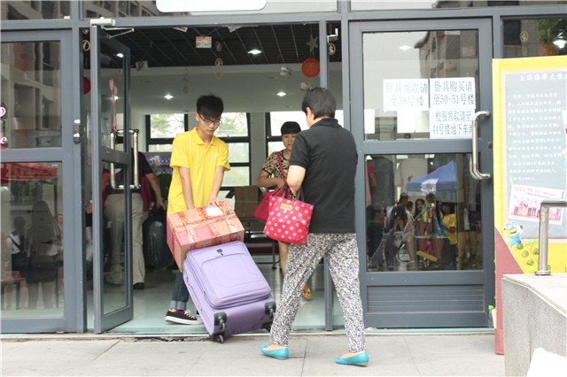早上七点交运的志愿者们就已经在24、42和58号楼布置迎新场地,半个小时后迎新队伍便已全部到齐就绪。他们有的在门口辛苦地举着院旗接应,有的在接待处耐心地接受家长和新同学的咨询,有的微笑着为学弟学妹们办理手续,还有部分同学则在一旁引导办理完手续的新同学前往他们宿舍。虽然下着小雨,但他们依然热心的欢迎每一位新生的到来,帮家长学生们搬运行李,让刚踏入大天博体育 园的新生们感受到了不一样的温暖。本科生新生辅导员都志亮老师及研究生辅导员陈莉老师全程参与,以确保迎新工作顺利完成。为了保证迎新服务的质量,天博体育 院长葛颖恩、党委书记冯晨曦、党委副书记赵睿老师亲临迎新现场,为家长和新生解答疑问,并对志愿者们的热情工作表示了感谢。迎新工作虽然辛苦忙碌,但志愿者的热情和用心使工作有条不紊。