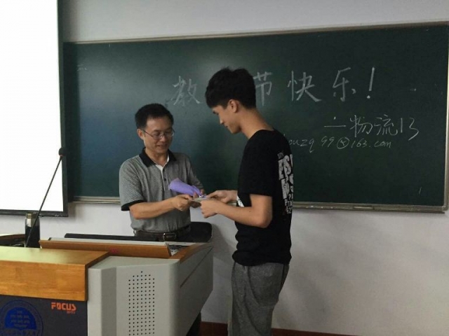 教学区的各个教室传来同学们整齐的声音:祝老师教师节快乐。学生代表向老师献上花朵和贺卡,同学们起立向老师送去节日的问候。收到礼物的老师非常的感动,表示收到同学们的礼物和祝福,让身为一名教师的自己感到很满足。同时,在交运天博体育 楼里,交运的同学们还向没有教学任务的老师送上了小礼物及节日祝福。
