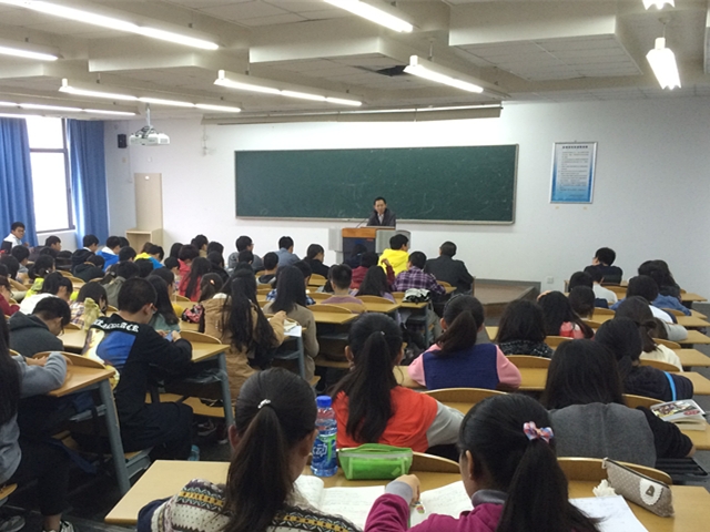 11月4日下午13点30分,天博体育 新生形势政策课讲座在教学区3A402举行。外国语天博体育 的欧阳曙老师为新生们带来了关于当前大国关系新变化的讲解,15级的各个班级都组织同学参与了此次讲座。