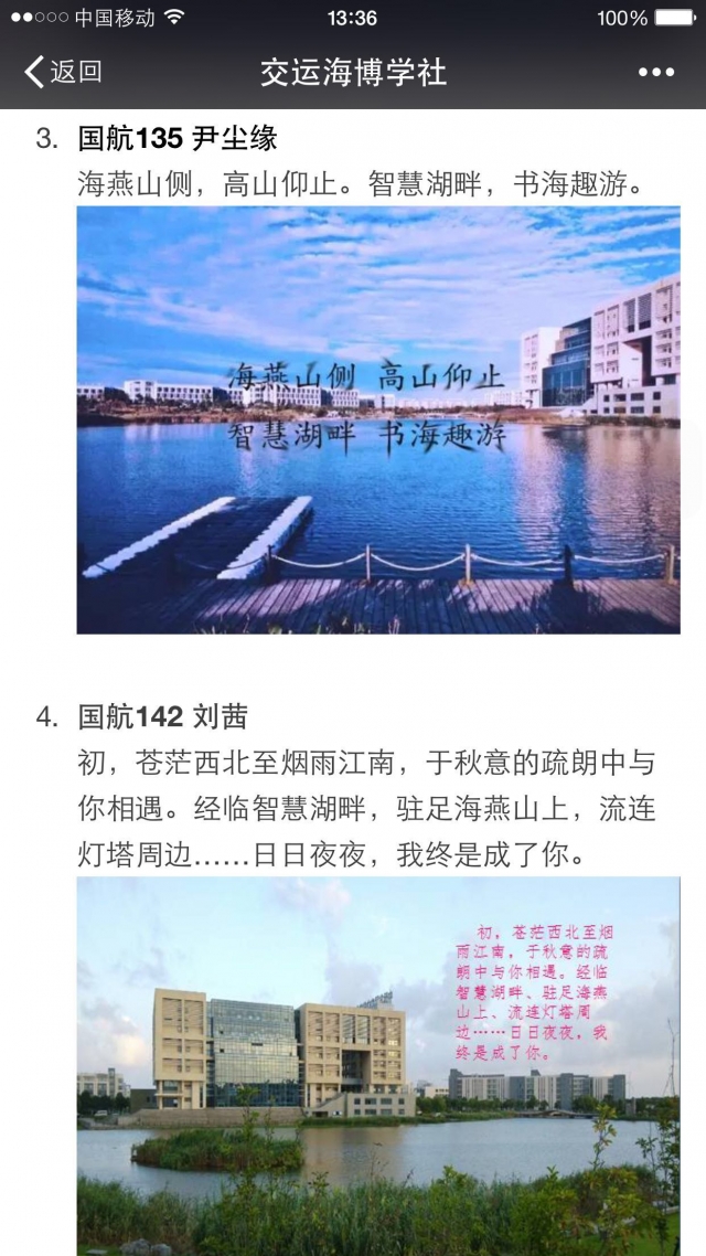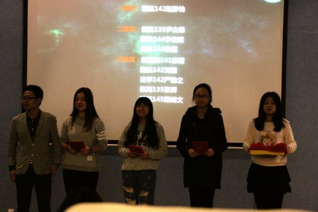活动举办初期,海博学社对“最美一句话”活动进行宣传,并取得了很好的反响。同学们的参与热情高涨,递交了诸多优秀作品,经过海博学社成员们激烈的讨论和层层筛选,最终评选出了16名实力选手进入了最后的投票决赛。决赛期间,经由辅导员老师们与海博学社的最终评比,评选出了9位获奖选手。一等奖赵静怡,二等奖尹尘缘、李佳妮、梁超,三等奖严韵之、刘茜、戴婧文、张辉、邵蕾。