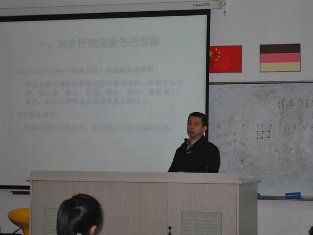 之后,朱晓宁教授为天博体育 师生作为题为《从全程物流服务视角看运输企业经营》的学术报告。报告从“对全程物流服务的理解、从系统角度看全程物流服务、现代物流理念下的运输活动、物流服务模式、物流解决方案的思考——运输为例”这五个部分展开。朱晓宁教授生动地讲解了全程物流的特征、物流企业和运输企业的区别、现代物流对运输服务的变革等问题。他认为应将运输经营者放在整个物流体系中思考,指出运输企业需从运输服务的提供者转变为物流解决方案的制定者、并应从独自提供运输服务转变为与合作者共享利益。