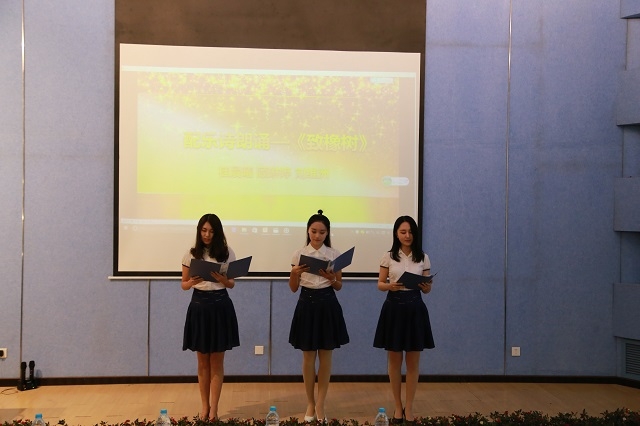 本次会议主要分为优秀队员表彰、才艺表演、授徽仪式及校长致辞四个环节。大会以播放视频短片《青春,在礼仪队》拉开了帷幕,三分钟的视频,记录了校礼仪队自2004年成立以来,这十三年里一路走来的点点滴滴,展现出了队员们对于这个组织的热爱。一张张活动照片、一届届队员合影、昔日礼仪活动的幕后花絮,当它们再次出现在大家面前时,无不打动了在场所有的观众。在优秀队员表彰环节中,李志鹏、梁亮、刘建三位老师依次上台,分别为2014级、2015级以及2016级的优秀队员颁发证书。在才艺表演环节,礼仪队成员桂晨曦、顾琳婷、刘维洲为大家带来了配乐诗朗诵《致橡树》,借此诗传递出当代女大学生对于平等自由、独立而有思想、热爱生活的向往。指导老师陈祯如随后也表达了自己对于队员们内外兼修、提升气质,热心服务的倍感欣慰之情,鼓励队员们今后更加积极主动、用微笑服务海大。在授徽仪式环节,副校长王海威亲自为各级女生队员代表及男生代表颁发徽章,并做出简短致辞。在致辞中,他欣喜地肯定了校礼仪队在过去的辛苦工作中的良好表现,同时,也对礼仪队提出了更高的要求,希望礼仪队作为天博体育 的形象代表,能够再接再厉,发扬“橡树”精神,根植海大,服务海大,展现出海大学子青春洋溢的精神风貌。