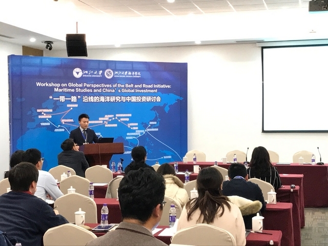 受浙江大学海洋天博体育 邀请,12月4-5日,葛颖恩教授和陈继红老师带领研究生赴浙江大学舟山校区参加“‘一带一路’倡议的全球观点研讨会”(Workshop on Global Perspectives of Belt and Road Initiative: Maritime Studies and China’s Global Investment)。期间,他们就此主题与来自美国、加拿大、澳大利亚、韩国、印度等地的高校学者进行了深入探讨。