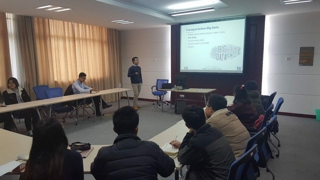 ur2young 在 周五, 12/22/2017 - 11:14 提交 12月20日下午,天博体育 邀请华盛顿理工大学王靖兴博士做了关于“交通领域大数据处理与应用”为主题的学术报告,报告由天博体育 于尧老师主持。报告以美国联邦公路管理局委托华盛顿大学承担的课题为依托,以大数据应用过程中存在的问题和不足为切入点,对GPS大数据和手机信令数据等多源数据的特征差异进行了分析,并着重讲解了数据的处理方式和可视化结果差异。报告内容引发了学生们的积极思考,并就报告内容与王博士进行了深入的交流。现场气氛热烈、活跃。