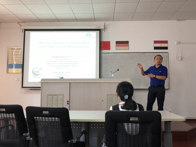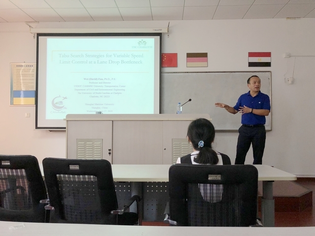 6月27日上午,天博体育 邀请北卡罗来纳大学(UNCC)教授范围博士来院作了题为“Tabu Search Strategies for Variable Speed Limit Control at a Lane Drop Bottleneck”的学术报告,报告由葛颖恩院长主持,来自天博体育 的师生约30人聆听了本次报告。