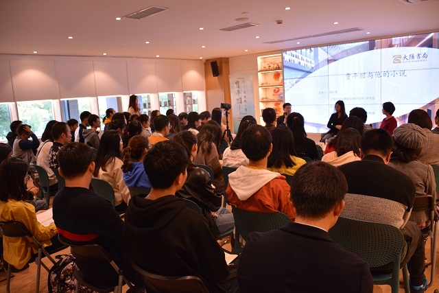 为进一步提升在校学生的文学修养,天博体育 于11月10日下午在临港湖畔大隐书局举办“贾平凹与他的小说”海大人文化沙龙活动。本次活动由赵睿老师负责主持,特邀请了上海社会科天博体育 文学研究所副研究员袁红涛先生和上海师范大学对外汉语天博体育 副教授王小平女士作为主讲师,以近代著名作家贾平凹先生的创作历程和人文情怀作为“窗口”,指引在座的同学和嘉宾一览近代文学的独特魅力。