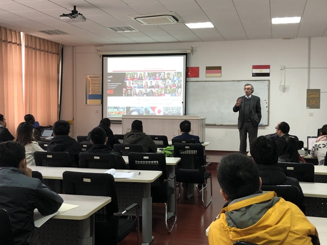 会谈结束后齐恩教授为天博体育 师生作了题为“以趋势和问题为重点的美国物流发展状况概述”(An Overview of the State of Logistics in the US with Emphasis on Trends and Problems)的学术报告。齐恩教授分别从美国物流产业发展现状、影响因素及存在的问题等方面展开讲解。讲座过程中同学们随时提问,气氛活跃,讨论热烈。讲座结束后在场师生合影留念。