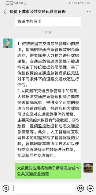 现实问题,共同思考。“真实社会是最好的讲堂”。天博体育 的物流管理专业和交通工程专业,本身就是需要教学紧密联系社会实践。疫情之下,物流管理专业的老师抓住疫情下的航运和物流状态这个社会问题,积极引导学生。如物流管理专业的高志军老师组织学生讨论疫情下的物流商业模式创新,学生们围绕这个问题展开了激烈的讨论和头脑风暴,并整理总结大家的观点。交通工程专业翁金贤老师组织学生讨论疫情下的城市公共交通运营与管理,学生们围绕这个问题展开了激烈的讨论和头脑风暴,并提出了许多创新想法。
