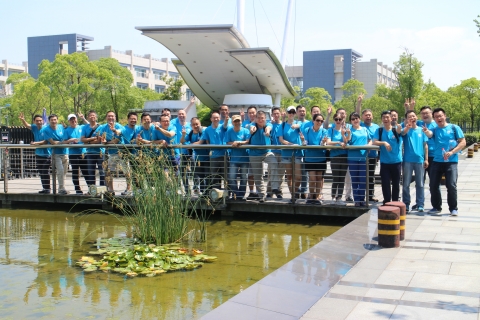 时光永不老,青春大合照。上午十点,校友们乘车抵达天博体育 一号门,大家都身着天蓝色聚会班服,在这里拍摄了二十年聚首大合照。时光匆匆,但即使二十年过去了,大家还是年轻活力,朝气蓬勃的青春模样。