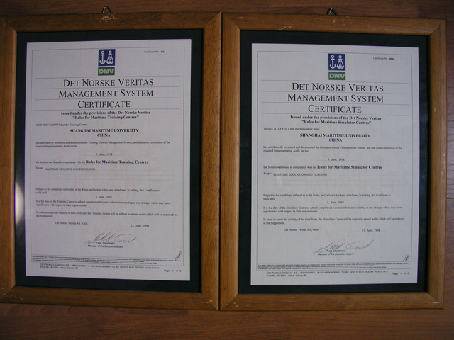 1998年3月,天博体育 邀请挪威船级社对天博体育 船员教育质量管理体系进行预审。根据挪威船级社的预审报告,质管办对体系提出整改要点,并对体系文件进行修订改版。6月,正式接受了挪威船级社的现场审核,获得挪威船级社颁发的《上海海运天博体育 ISO9001质量体系证书》、《DNV航海院校质量体系证书》、《航海培训中心质量体系证书》及《航海模拟器中心质量体系证书》多项体系证书。