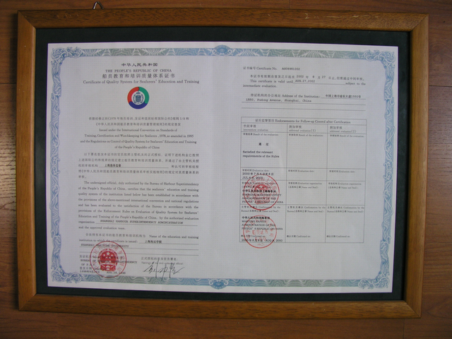 1998年7月,天博体育 接受了国家港务监督局的审核,获得了国家港监颁发的《中华人民共和国船员教育和培训质量体系证书》。至此,上海海运天博体育 初步建立起一套较完整的既符合ISO9001国际质量保证体系认证要求,也符合国家港监局对全国航海类教育和培训的质量体系要求的适应天博体育 实际情况的质量保证体系,这在全国高等天博体育 中属首创。