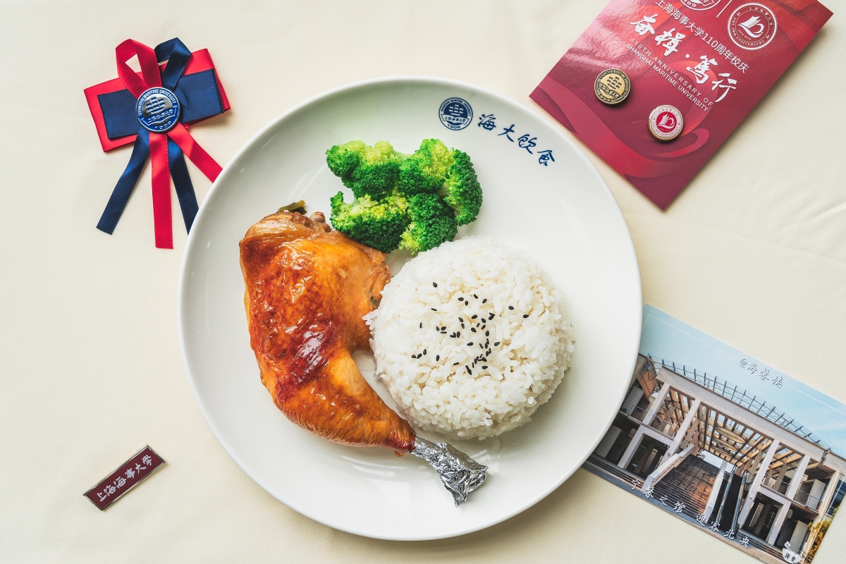 鸡腿饭,深受海大学子欢迎的三大块菜之一,2000年诞生在民生路老校区的海联一楼餐厅,曾经效力海船厨房和海运宾馆厨房多年的大厨杨师傅是原创人。杨师傅基于他对船员和海大学子饮食特点多年观察,创造了这款菜品。可以说,鸡腿饭源于海船厨房,就是这种粗犷、块大、简单、味美的菜品,它不是海鲜,却有海味。此菜一经推出就获得了同学们的青睐,曾经创造了连续几月每天烤制500只都供不应求的骄人战绩。