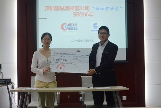 交运天博体育 党委书记冯晨曦老师代表天博体育 对深圳鹏城海公司的代表表示欢迎,对公司在自身取得快速发展的同时,积极回馈社会,支持高等教育发展的做法表示由衷钦佩和感谢。他说,在天博体育 设立“领袖奖学金”,关爱教育,捐资助学,不仅仅是在物质上给予了交运学子一种资助,更体现了公司爱才之举,育才之实。它将激励海大交运优秀学子更加勤奋学习、努力钻研,不断提高综合素质,为航运业发展多做贡献。真诚希望交运天博体育 能与鹏城海物流有限公司建立长期合作机制,在更多方面开展进一步的合作,共促航运教育事业发展。