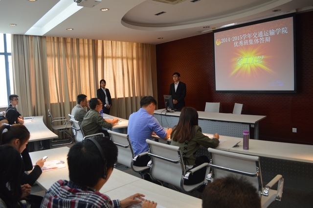 参与此次答辩的共有8个班级,13级的优秀代表班级有交工132、交运133、国航134、国航135,14级代表有交运141、物流142、新国航141、国航142。答辩会分为三个阶段,首先是各班级代表对各自班级基本情况、学习成就、思想建设等方面进行陈述。然后是提问环节,由评委们进行提问。在各个班级的介绍下,不难看出13级代表班级在学习以及思想建设上更突出一些,不仅学习上互帮互助,而且对思想建设很是关注,组团学习先进思想。当然14级在班级活动方面更加积极,其中国航142组织观摩过洋山深水港,对将来就业方向更加明确,意义深刻。最后是评委总结环节,刘建老师和郝海光老师分别就班级建设方面存在的问题提出了自己的看法,鼓励大家积极进取,并能通过这次答辩学到更多,优秀班级代表们也感触颇多。