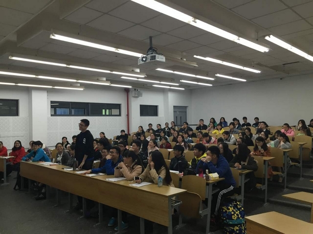 由于活动从报名阶段就受到了广大海事同学的关注,许多对沪粤语感兴趣的同学纷纷报名参加,不少错过报名时间的同学也在上课现场加入了我们的课堂中。首先开讲的内容是沪语文化,小老师张黎、胡琳安认真的为大家介绍沪语文化,教大家最基本的沪语发音,用“唯旅行和美食不可辜负”这一主题吸引同学们的注意力,学员们都乐在其中。接下来由粤语协会的金牌讲师杜泽洲、李枫琳教大家学习粤语,轻松活跃的课堂气氛使同学们寓教于乐,不枉此行。课程最后还请来了一位优秀粤语校园歌手,在最后为大家带来了动听的粤语版《小幸运》。