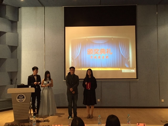 本次比赛分为优秀学风班级评比、优秀学风寝室评比和优秀学风进步个人三个环节。在优秀学风班级评比环节中,各参赛班级代表通过热情洋溢且饱含自信的演讲,向大家展示了各自班级在学习成绩、社会实践和思想建设等方面取得的优秀成果,表现出了各班级所特有的魅力和团结凝聚力。接下来的优秀学风寝室评比环节,参赛选手们以诙谐自信的语言、制作精美的PPT和视频打动了现场观众,使现场观众充分地感受到了寝室室友之间至亲至友的温馨与感动。活动的最后,主持人宣读了此次学风评比活动的评选结果,有嘉宾为获奖同学颁发了奖项。
