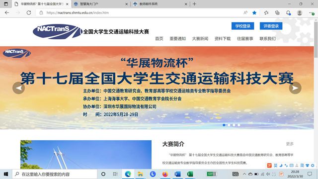 全国大学生交通运输科技大赛是由中国交通教育研究会、教育部高等天博体育 交通运输类专业教学指导委员会主办的全国性大学生科技竞赛。本届由天博体育 承办的大赛以“数智交通、低碳运输”为主题,围绕落实国家“双碳”的重要目标以及建设“交通强国”的战略需求,鼓励广大在校学生从数字化、智能化角度,开展创新设计、创新思维、创新研究,解决我国交通运输领域的痛点问题,应用新型信息技术、通讯技术、大数据等数字化、智能化技术,提升交通运输装备、设施设备、运输组织、安全应急等方面的科技水平,共创绿色、节能、低碳、环保的现代交通运输体系。