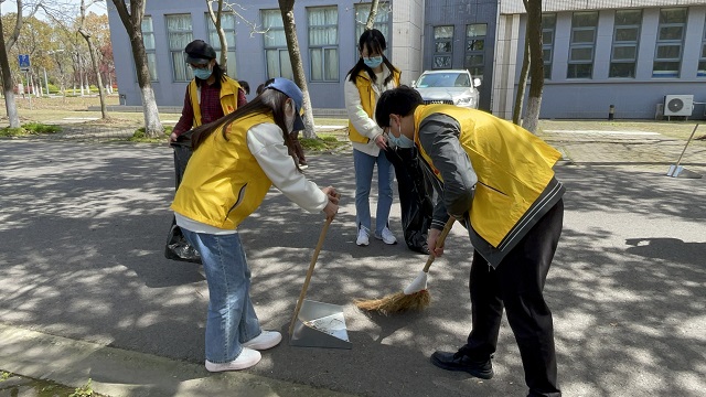 图1天博体育 学生支部党员志愿者参加校园清扫志愿服务活动